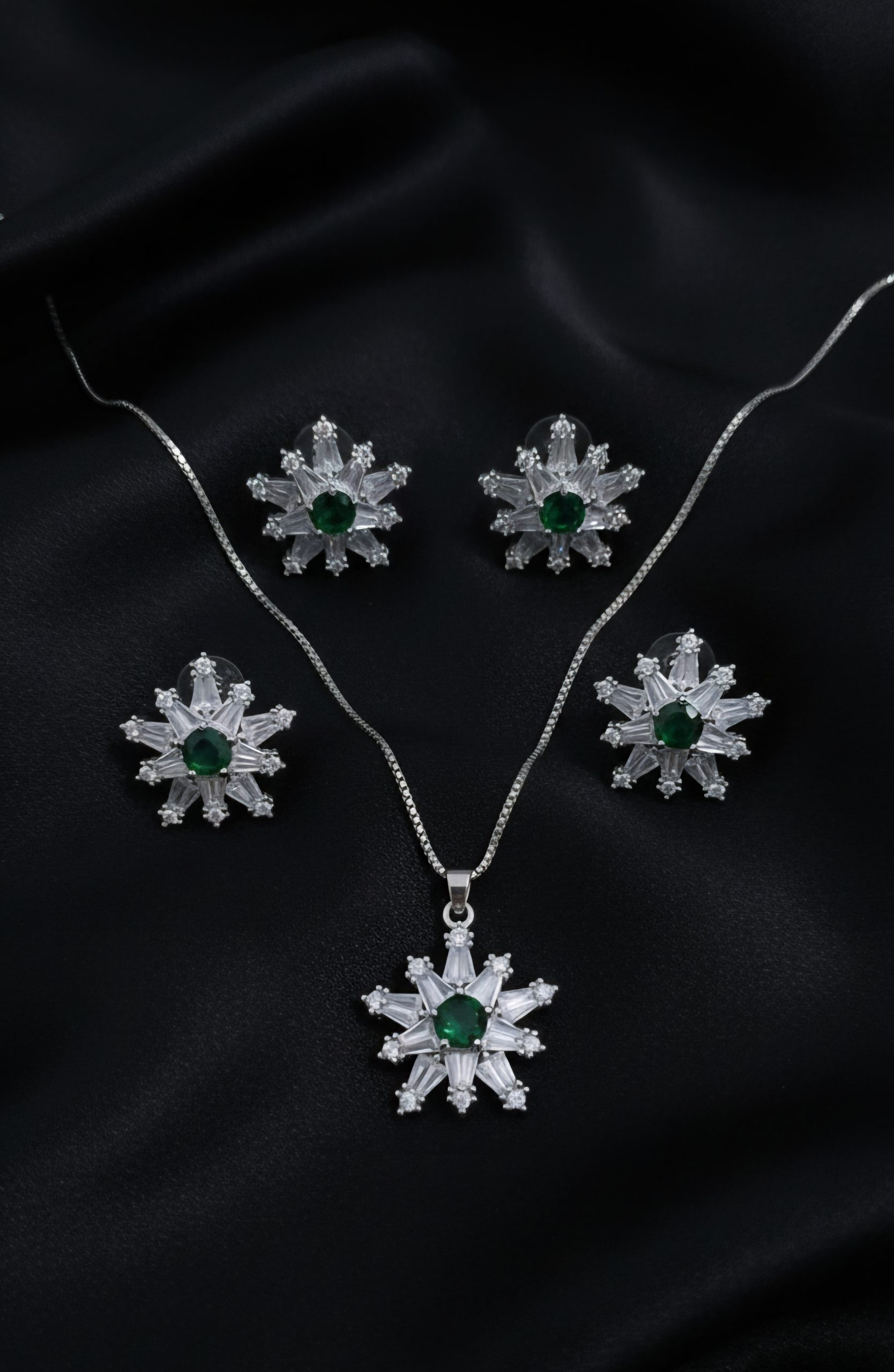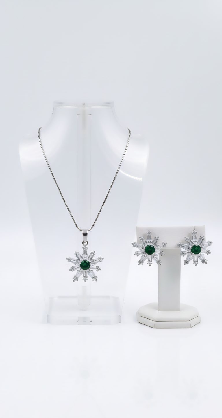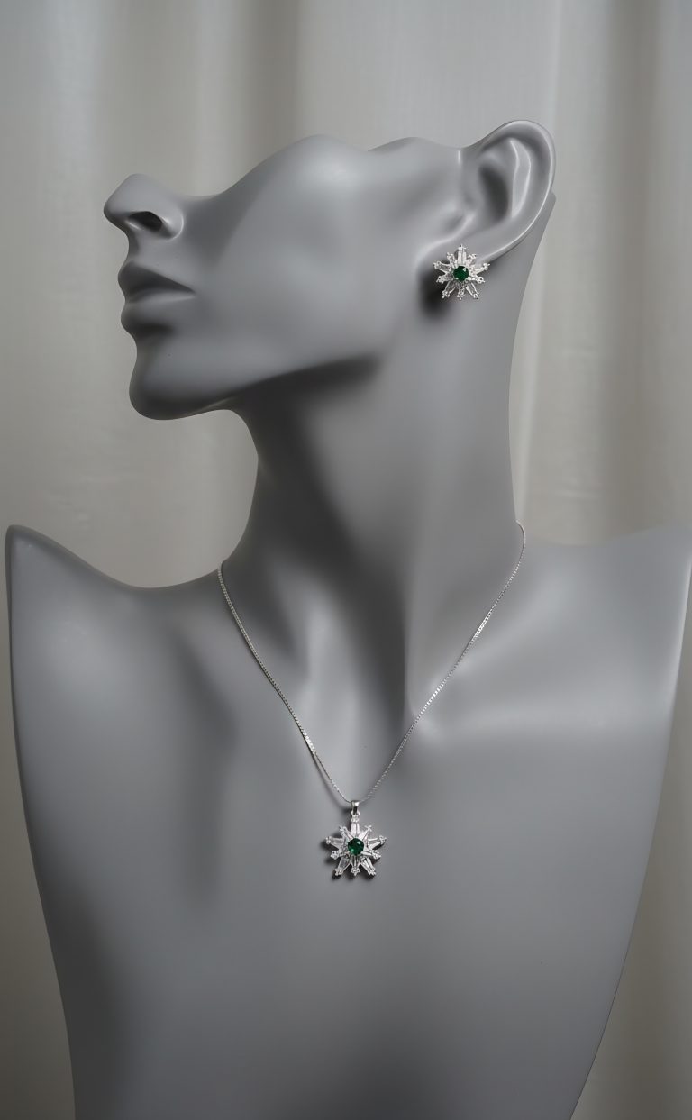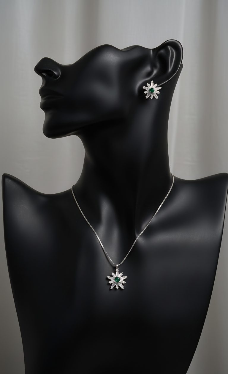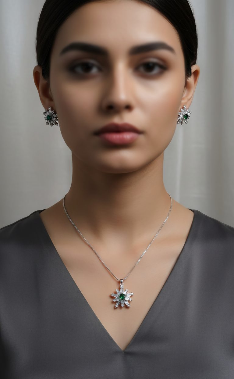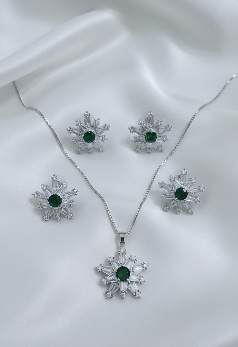 Add celestial charm to your jewellery collection with this star shape zircon design, beautifully accented with a round green stone at the centre. Crafted to reflect elegance and modern luxury, the sparkling zircon stones deliver a diamond-like brilliance, while the vivid green accent adds a refreshing pop of colour.