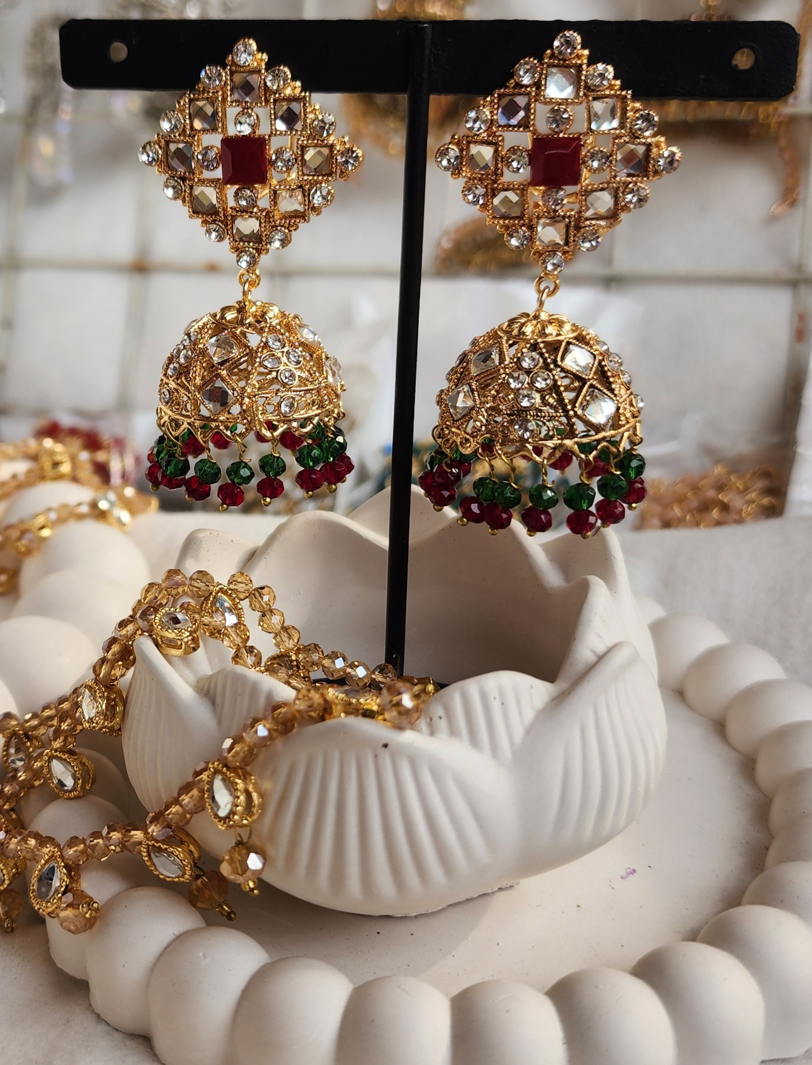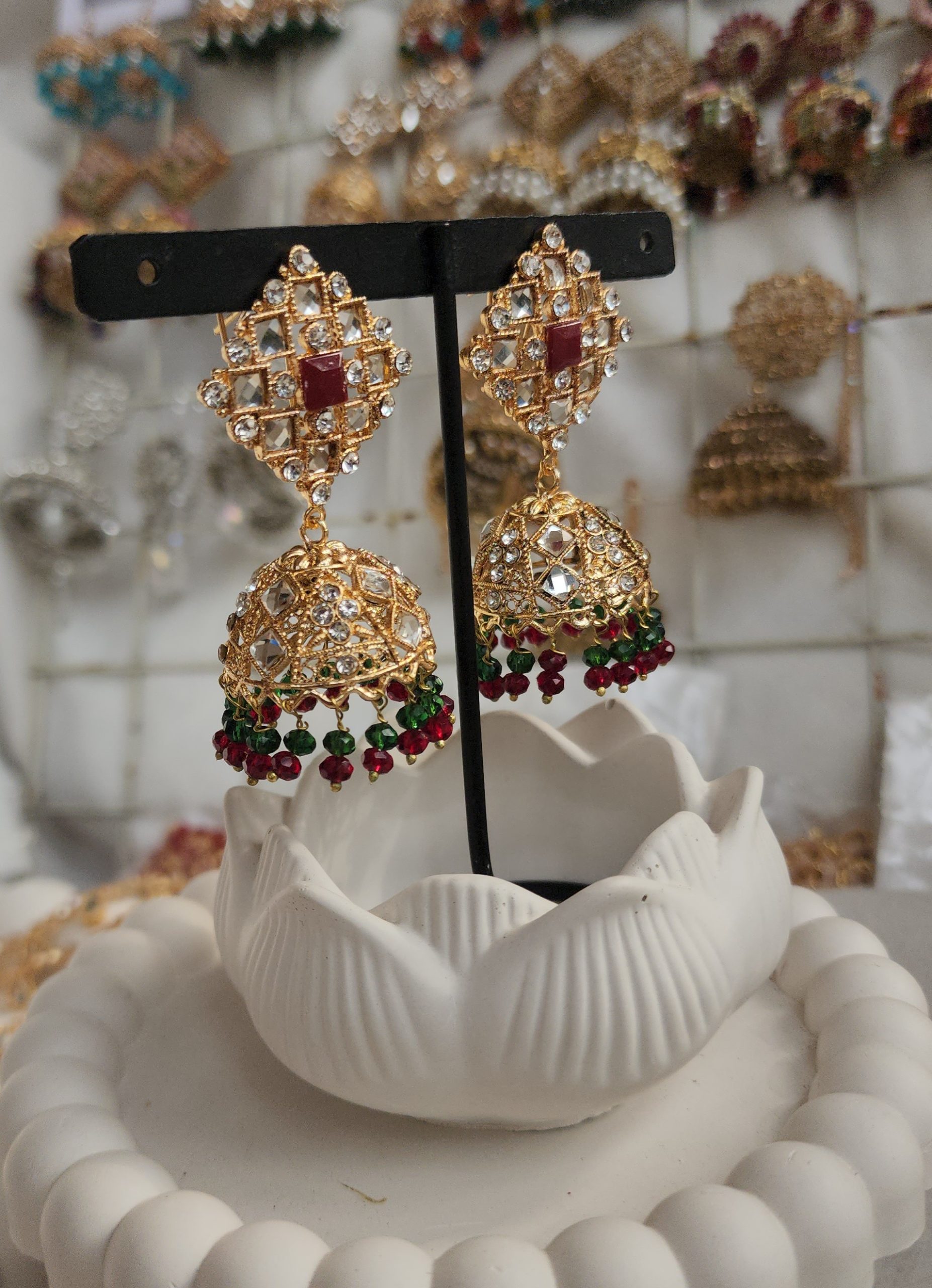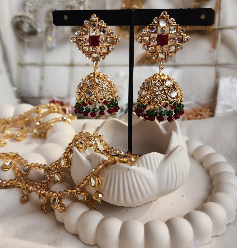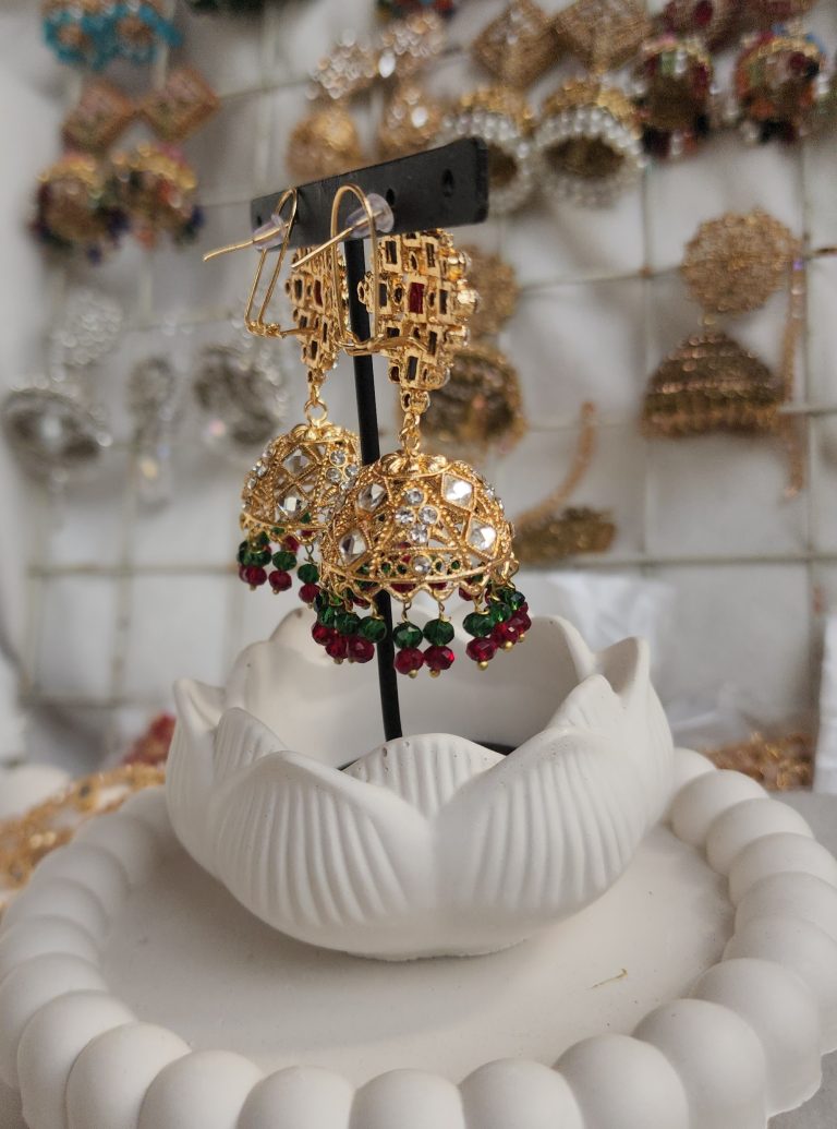 Complete your Eid and wedding jewelry collection with this timeless Pakistani jhumka design, crafted for women who love traditional elegance with festive sparkle.
