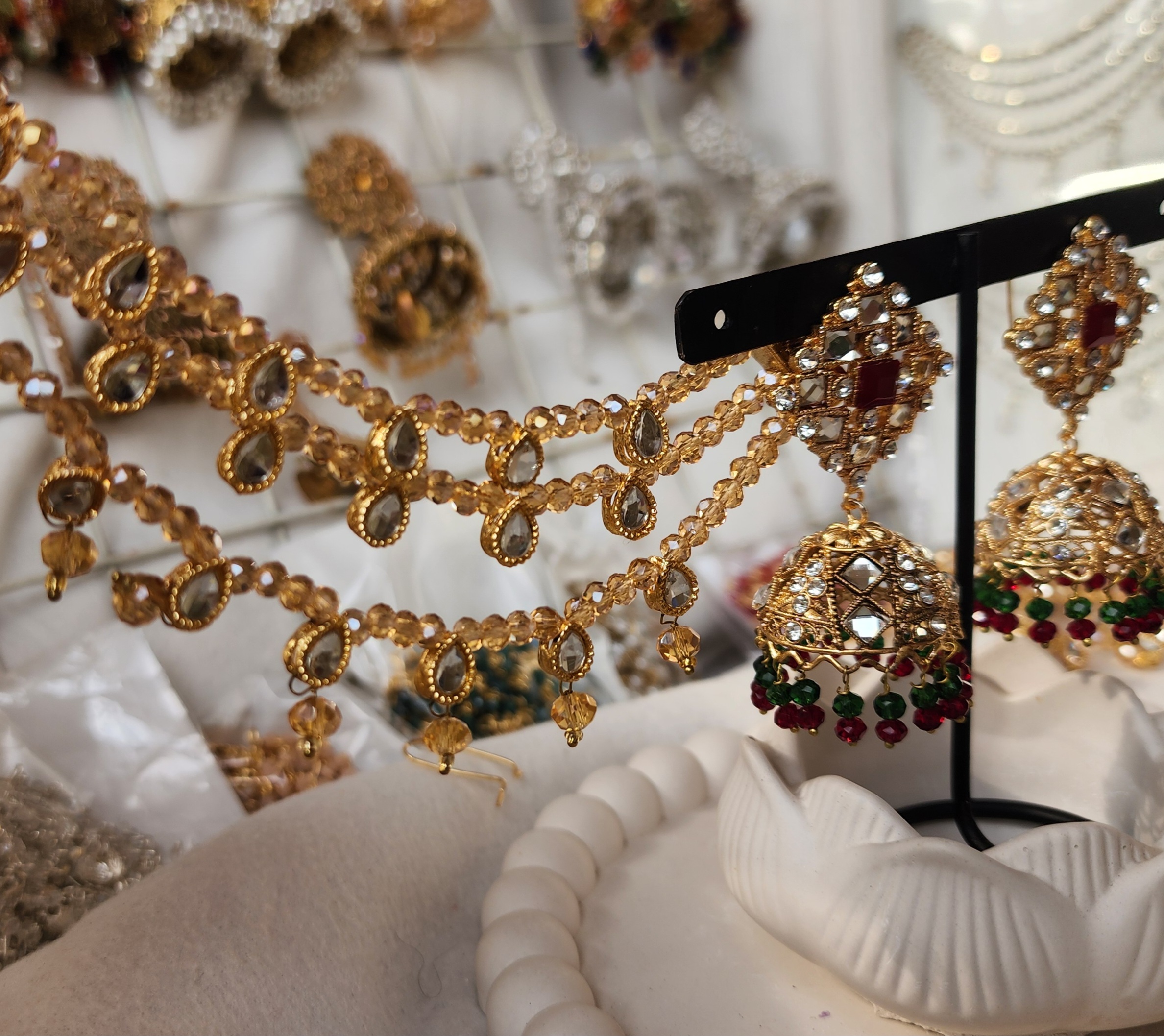 Add our elegant sahara attachment to achieve a complete Kashmiri bridal look. The ear-to-hair chain styling is trending in Pakistani wedding fashion, making it perfect for brides, bridesmaids, and Eid festive shoots.