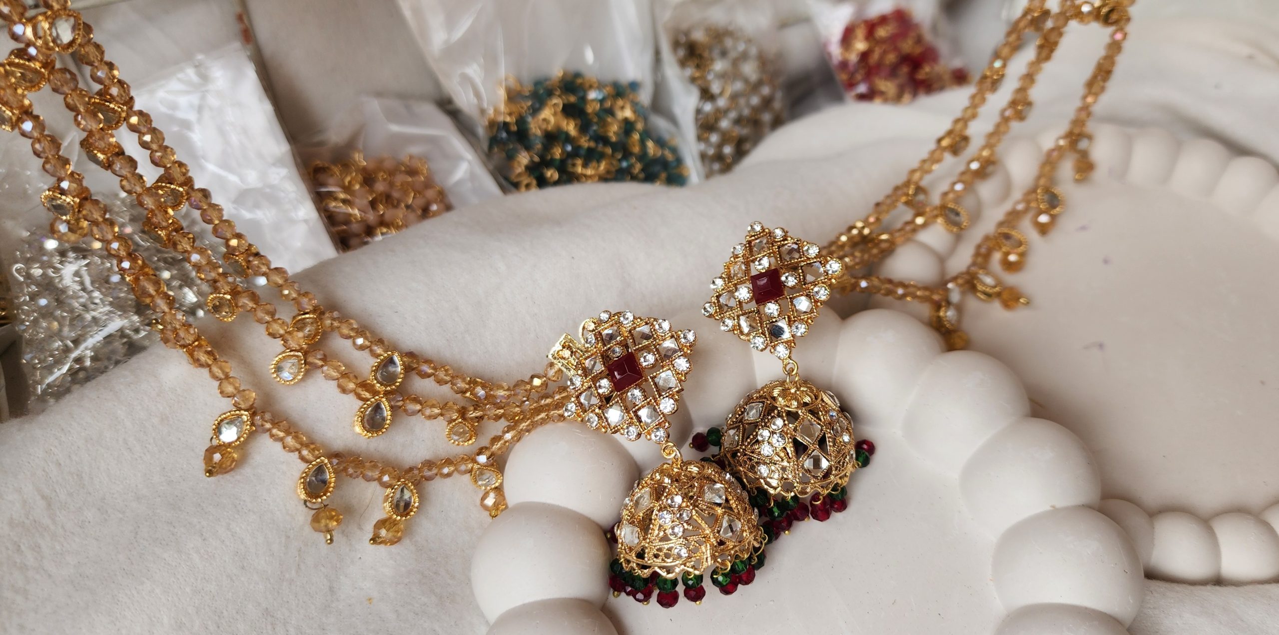Boost your festive wardrobe with statement Eid jhumka earrings with sahara, designed for women who love traditional elegance with modern bridal trends.