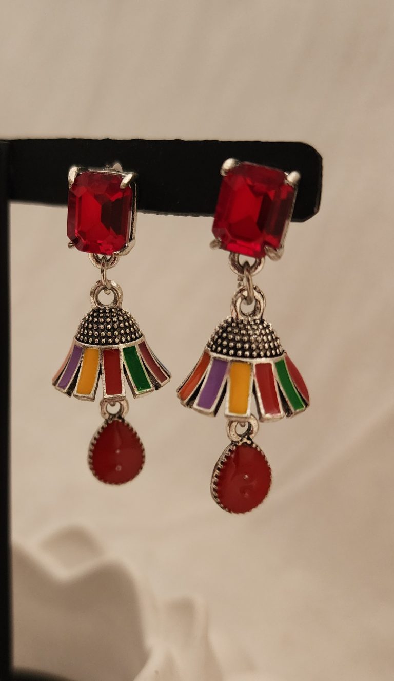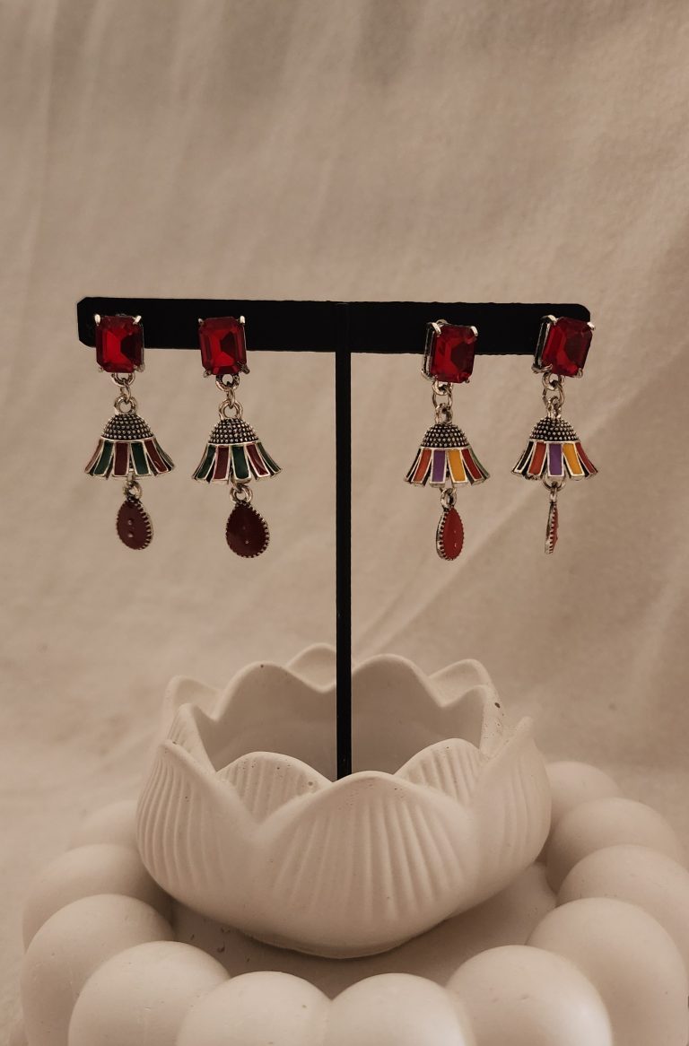 Maroon Enamel Jhumka is a beautifully crafted traditional earring designed to enhance your festive and formal look. Adorned with rich maroon stones, these jhumkas feature detailed multi-color enamel coating that adds a vibrant cultural touch.