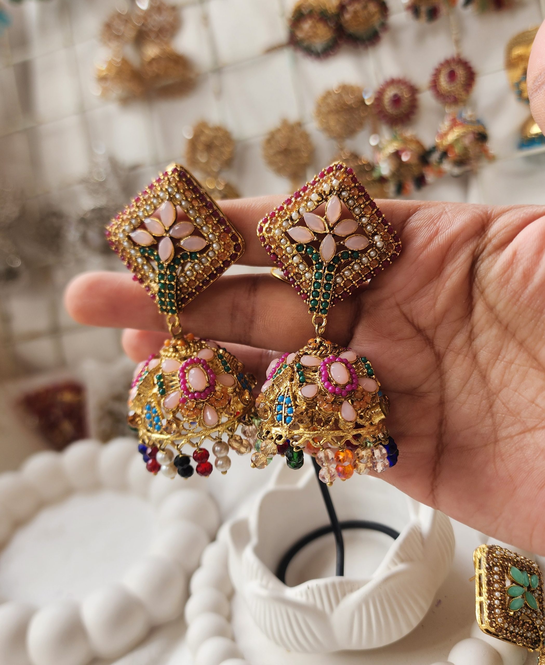 Made with detailed craftsmanship and a premium finish, these bridal style jhumka earringsenhance every traditional outfit including shalwar kameez, saree, gharara, maxi dress, and lehenga. Whether you’re styling your Eid day look or attending a Pakistani wedding function, these statement earrings add instant glamour.