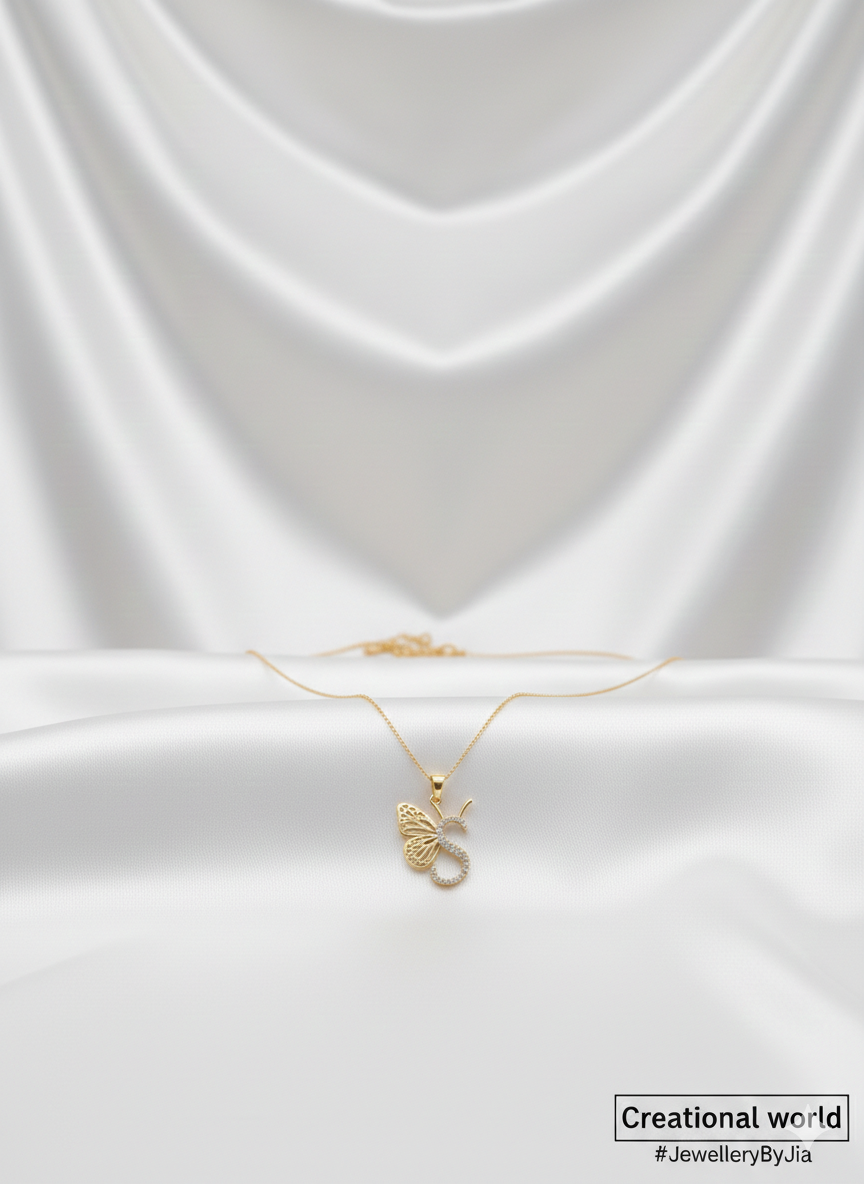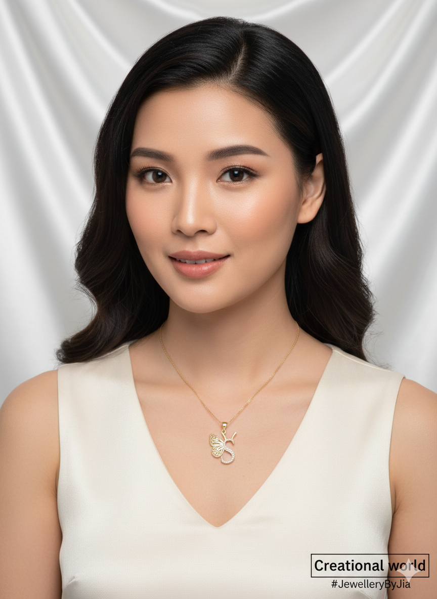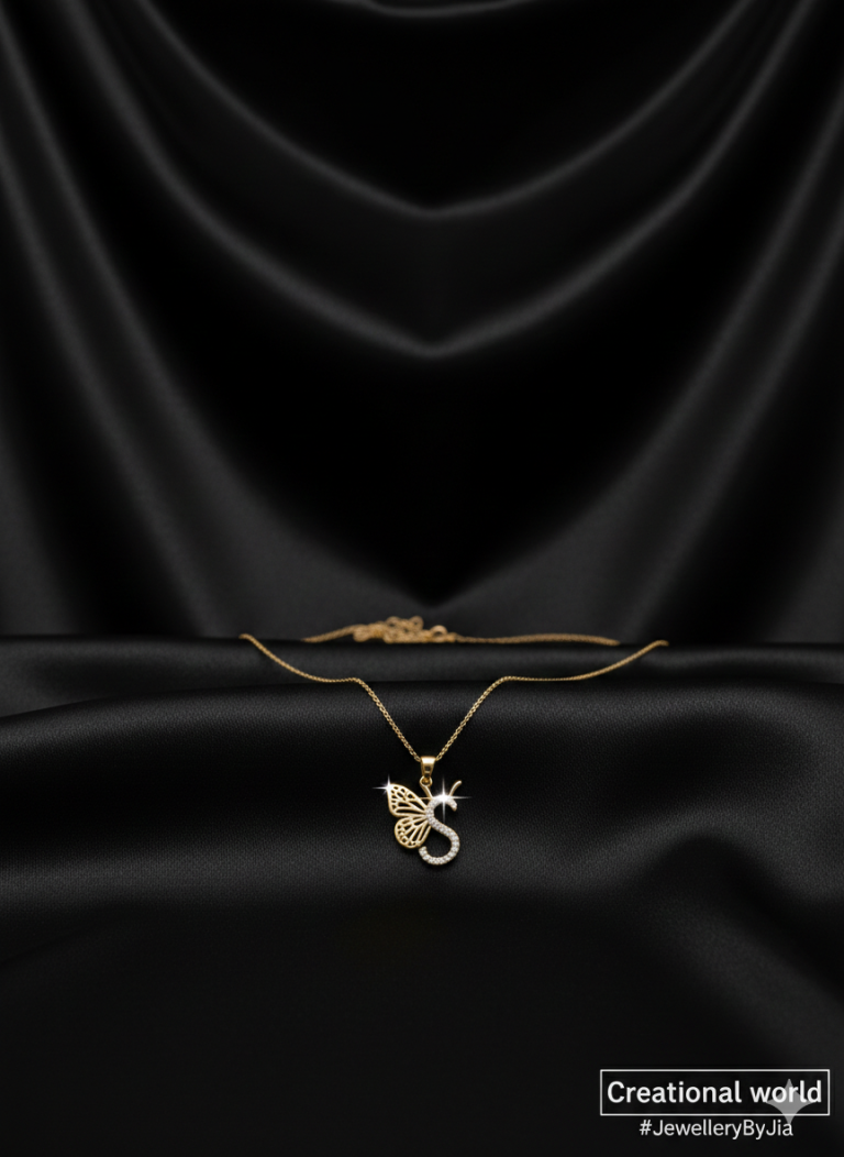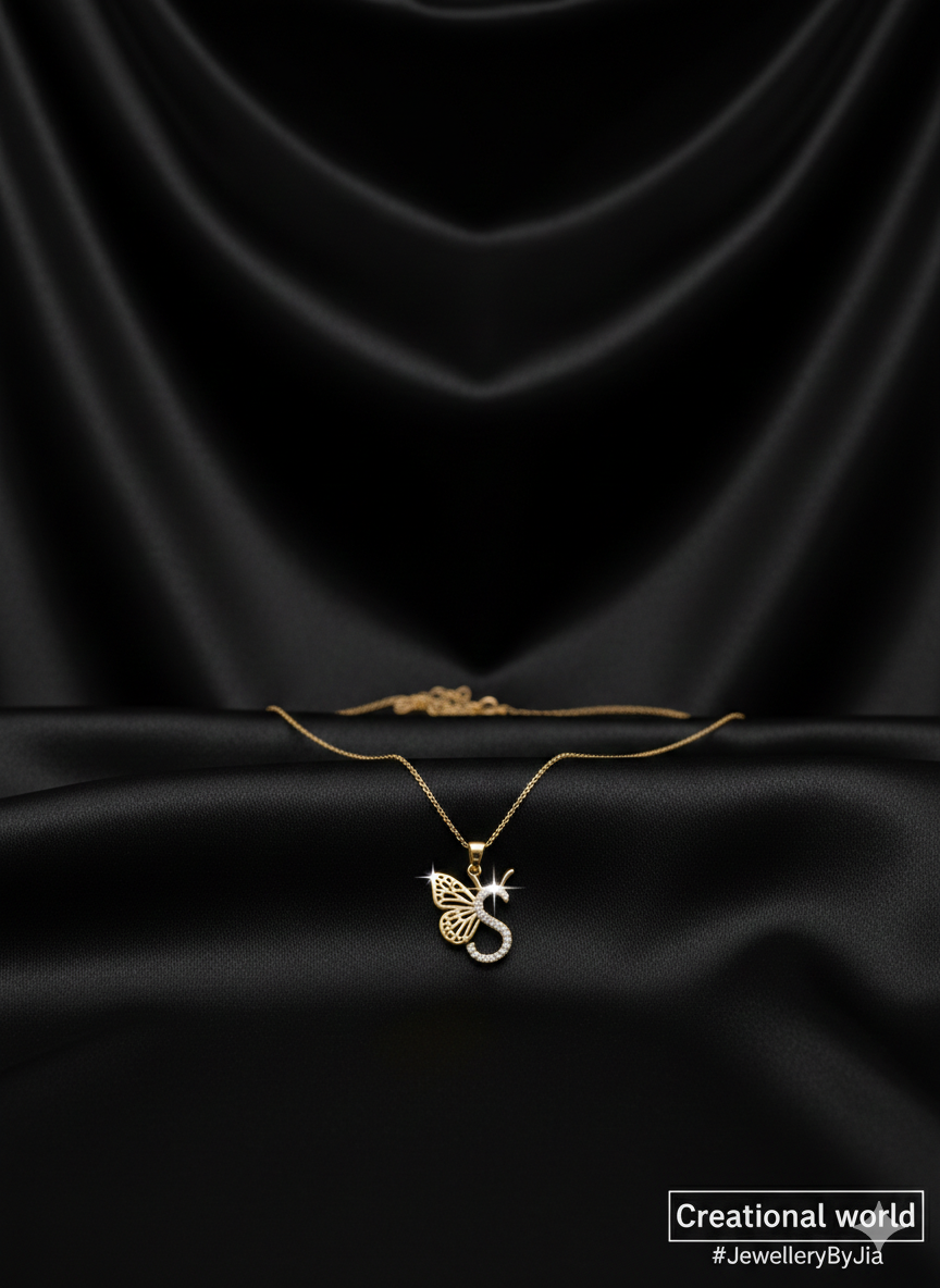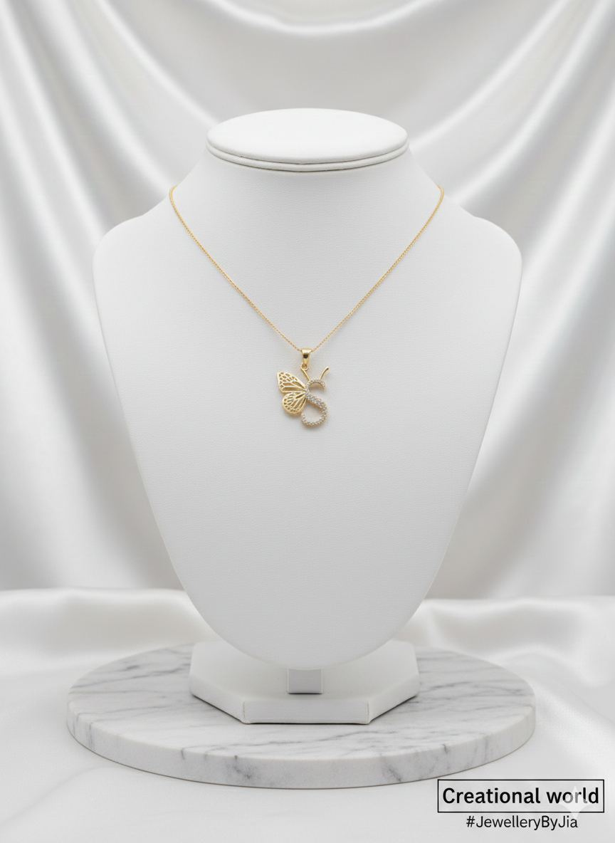 Whether worn as a personal statement or gifted to someone special, the Butterfly Zircon Name Pendant (A) is a versatile accessory that enhances both casual and formal looks with effortless charm.