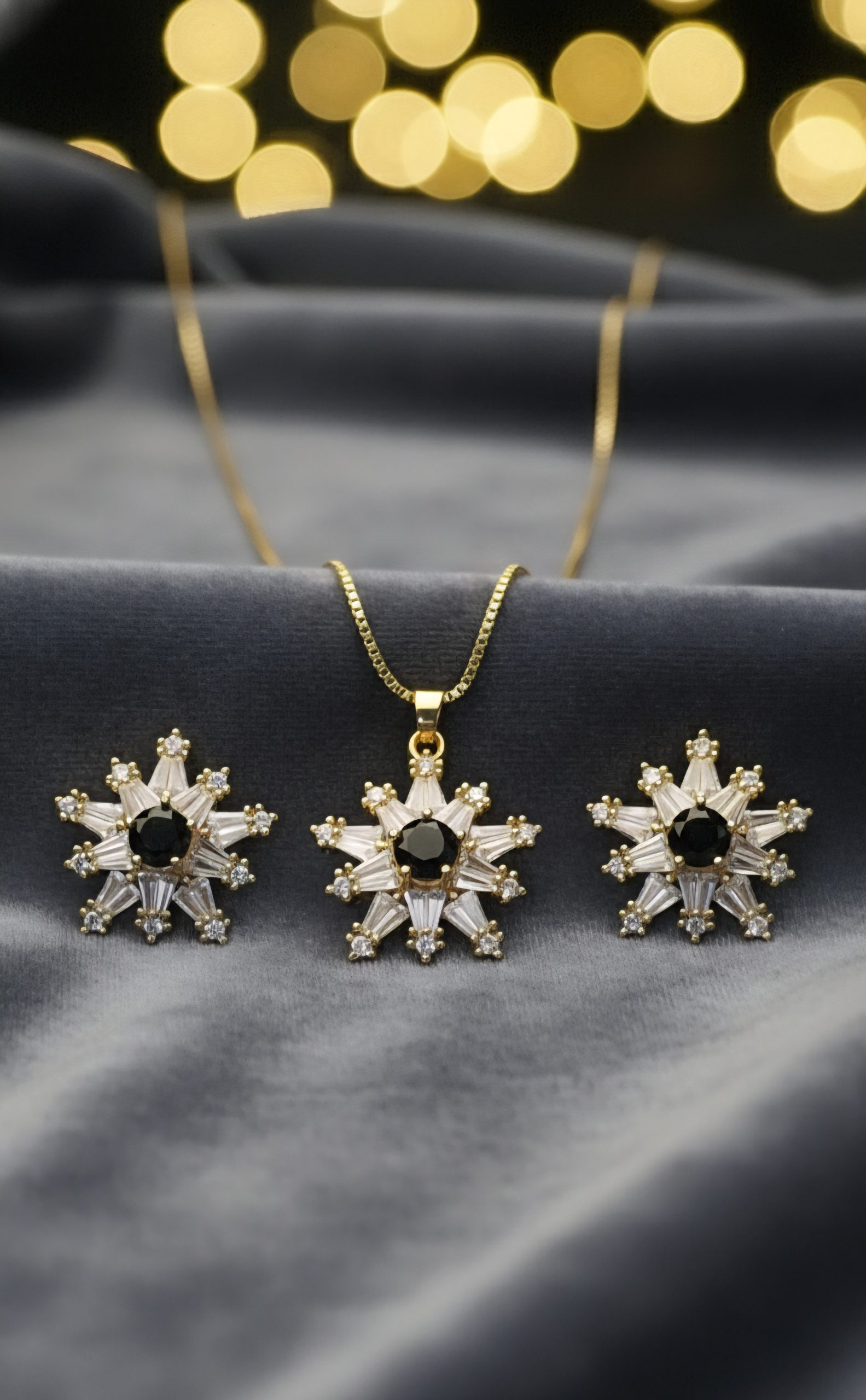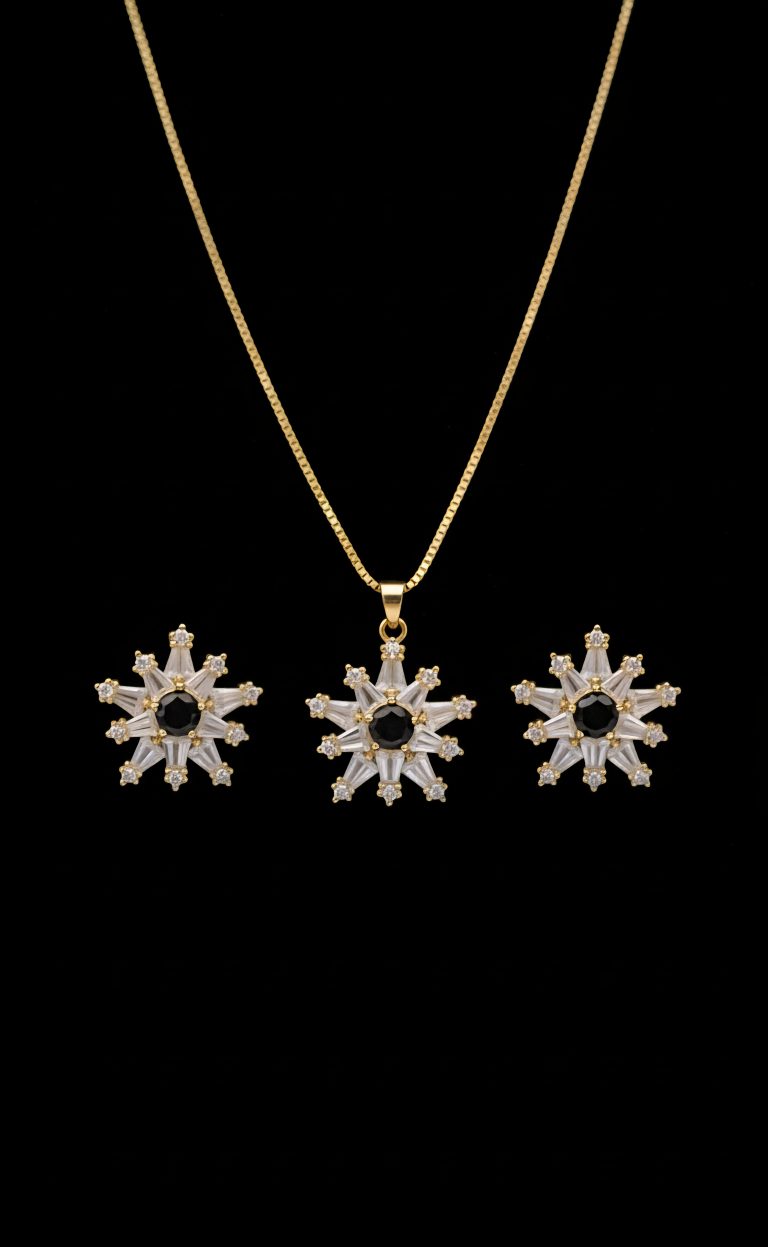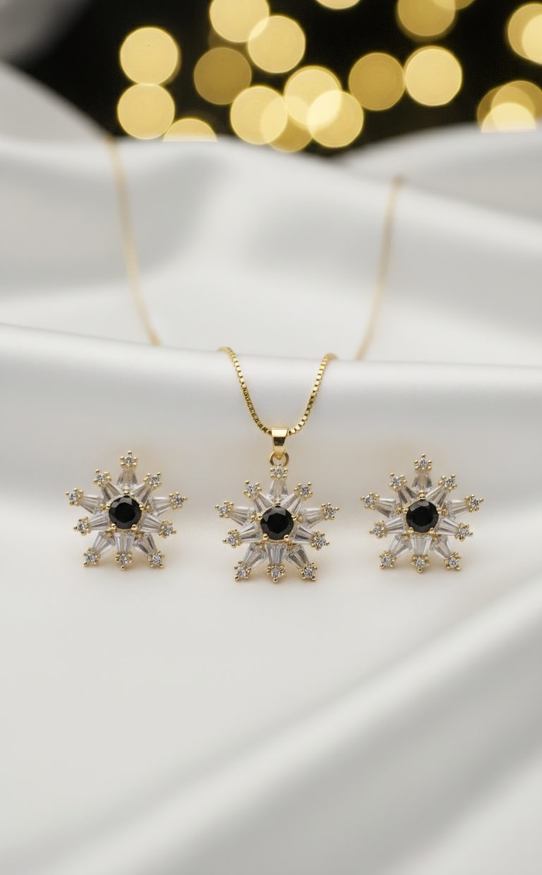 The highlight of the design is a stunning Black center stone, creating a bold yet refined contrast that instantly elevates your look. Thoughtfully crafted for lightweight and comfortable wear, this set is ideal for long hours without compromising on style.